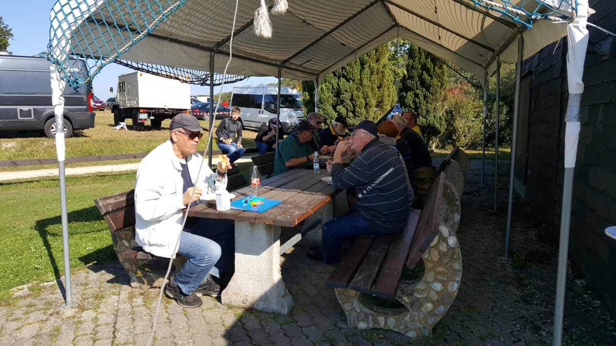 Jeder hat eine Aufgabe bekommen, die begehrteste Arbeit war das Abreißen der Theke, denn diese sollte komplett abgebaut werden. Vorschlaghammer, Meißel und pure Männer Kraft wurde eingesetzt, bis das sperrige Ding endlich klein war. Stolz wurden die Brocken vor der Hütte aufgereiht und sich selbst überlassen. Dann haben wir uns mit einem ordentlichen Frühstück gestärkt und es konnte weitergehen. Alles musste raus, damit Platz war die Wände zu reinigen und sie dann mit frischer Farbe neu anzulegen.